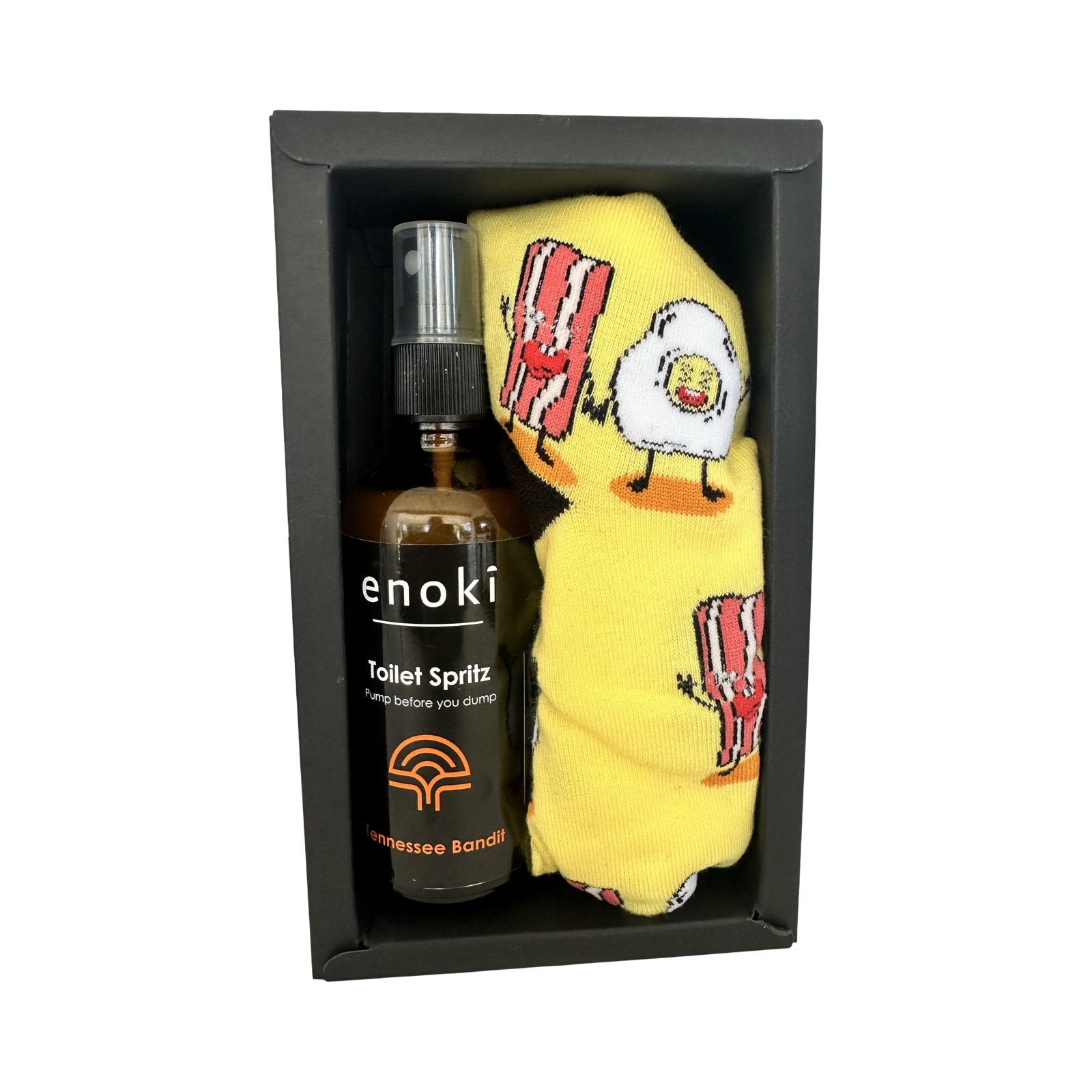 This box of goodies is great for the man that has everything. Perfect for a Christmas present, or just a gift to say good on ya mate! Included is a toilet spritz in a manly fragrance that he can pump before he dumps while on the throne. In addition to this a pair of quirky socks (eggs and bacon or mexican). Theres even room to slide some instant kiwis or a lotto ticket if you decide to add to it.
